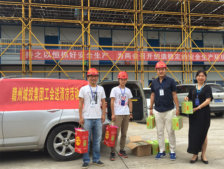 盛夏酷暑,驕陽(yáng)似火。7月16日至7月23日,贛州城投集團(tuán)工會(huì)認(rèn)真貫徹落實(shí)集團(tuán)黨委的指示精神,心系項(xiàng)目一線的廣大干部員工,積極開展“夏季送清涼”活動(dòng),認(rèn)真做好防暑降溫工作,用實(shí)際行動(dòng)踐行黨的十九大精神,聯(lián)系關(guān)愛(ài)干部員工,發(fā)揮橋梁紐帶作用。集團(tuán)工會(huì)主席、總經(jīng)理助理肖暉帶隊(duì)走訪慰問(wèn)。
