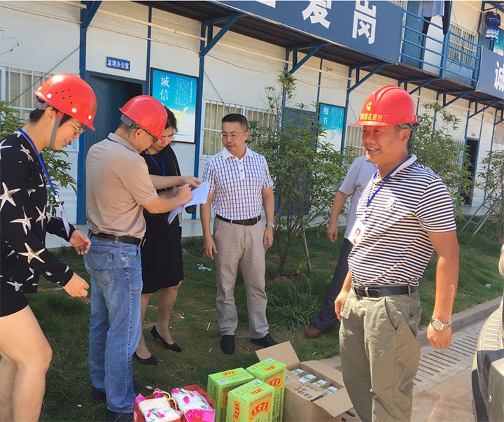 走訪慰問(wèn)過(guò)程中,肖暉主席首先向高溫季節(jié)仍然堅(jiān)守在工地一線的廣大干部員工致以誠(chéng)摯的問(wèn)候,與他們親切交談,鼓勵(lì)大家鼓足干勁,加油實(shí)干,克服高溫、疲勞等不利因素,合理安排工作和休息時(shí)間,做到安全文明施工,確保工程建設(shè)進(jìn)度。并向他們送上防暑降溫飲料、綠豆、毛巾等物品,把集團(tuán)黨委和工會(huì)的關(guān)懷送到他們手上。