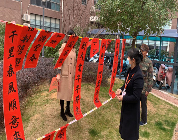 一大早,贛州城投集團(tuán)振興實(shí)業(yè)公司黨支部的黨員、入黨積極分子來(lái)到創(chuàng)業(yè)家園小區(qū),有的與部分租戶一起掛上燈籠和中國(guó)結(jié),營(yíng)造濃厚的節(jié)日氛圍;有的組織書法志愿者為租戶送春聯(lián)、“福”字;有的組織醫(yī)護(hù)志愿者為租戶開展免費(fèi)量血壓、血糖、提供醫(yī)藥建議等義診活動(dòng)。