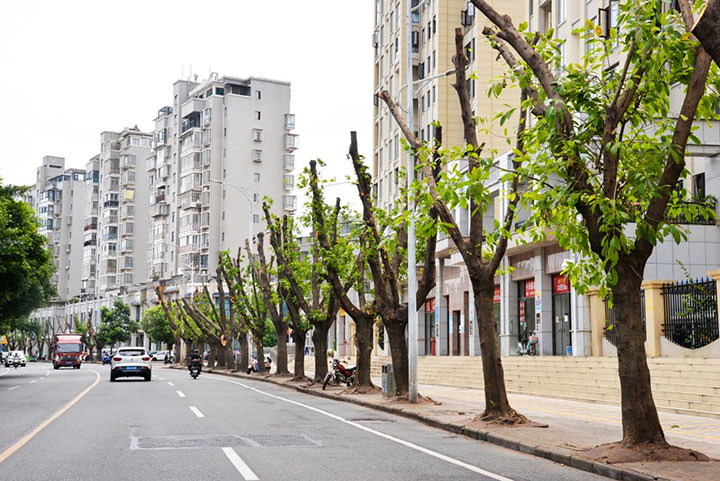 贛州生態(tài)環(huán)境有限公司管養(yǎng)部門針對(duì)市民們反映的情況,立即組織人員現(xiàn)場(chǎng)查看、清點(diǎn),并制定了科學(xué)的修剪方案。作業(yè)人員在做好完整的道路施工安全措施后,利用登高車云梯,配合修剪專用油鋸、枝剪等專業(yè)修枝工具,對(duì)樹木進(jìn)行修剪,并及時(shí)將修剪下的大樹枝清運(yùn),保證道路行人車輛的安全通行。經(jīng)過作業(yè)人員的修剪和規(guī)整,整條路都更加通透和整齊了,不僅解決了周邊居民住宅的采光問題,也減少了行道樹倒伏的安全隱患。