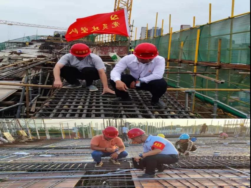 項(xiàng)目部在柱頂環(huán)梁模板支撐體系搭設(shè)、鋼筋綁扎攻堅(jiān)中,遇到了斜梁鋼筋交叉、節(jié)點(diǎn)處鋼筋極密的特殊情況,同時(shí),柱頂環(huán)梁超重超高,且為雙曲面結(jié)構(gòu),施工難度大、定位難度大。為破解這些難題,工程管理公司派駐項(xiàng)目部的黨員精心組織各參建單位,積極實(shí)施“支部建在項(xiàng)目上、黨旗飄在陣地上、黨員沖在一線上”的項(xiàng)目黨建工作法,在施工過(guò)程中,臨時(shí)聯(lián)合黨支部黨員及參建各方全程監(jiān)督旁站,實(shí)現(xiàn)全過(guò)程安全、質(zhì)量管控,達(dá)到了預(yù)期計(jì)劃目標(biāo)。