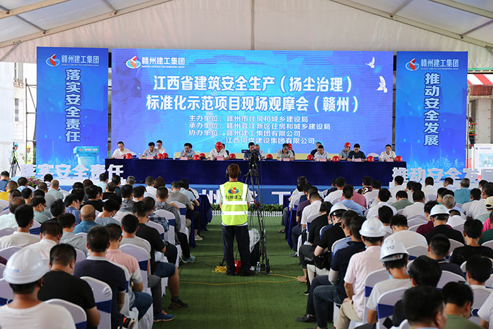 日前,2021年江西省建筑施工安全生產(chǎn)(揚(yáng)塵治理)標(biāo)準(zhǔn)化示范項目現(xiàn)場觀摩會(贛州)在贛州城投集團(tuán)星洲萃苑(一期)項目工地成功舉辦,會議主題為“落實安全責(zé)任,推動安全發(fā)展”。市住建局、市應(yīng)急局、蓉江新區(qū)管委會、贛州城投集團(tuán)有關(guān)領(lǐng)導(dǎo),以及來自各縣(市、區(qū))住建主管部門分管領(lǐng)導(dǎo)和安全監(jiān)督機(jī)構(gòu)負(fù)責(zé)人,市本級在建項目企業(yè)代表,新聞媒體記者等共計200余人走進(jìn)項目施工現(xiàn)場,重點(diǎn)對星洲萃苑(一期)項目建筑施工安全生產(chǎn)標(biāo)準(zhǔn)化、綠色文明施工、智慧工地管理等方面進(jìn)行了全方位的觀摩學(xué)習(xí)。