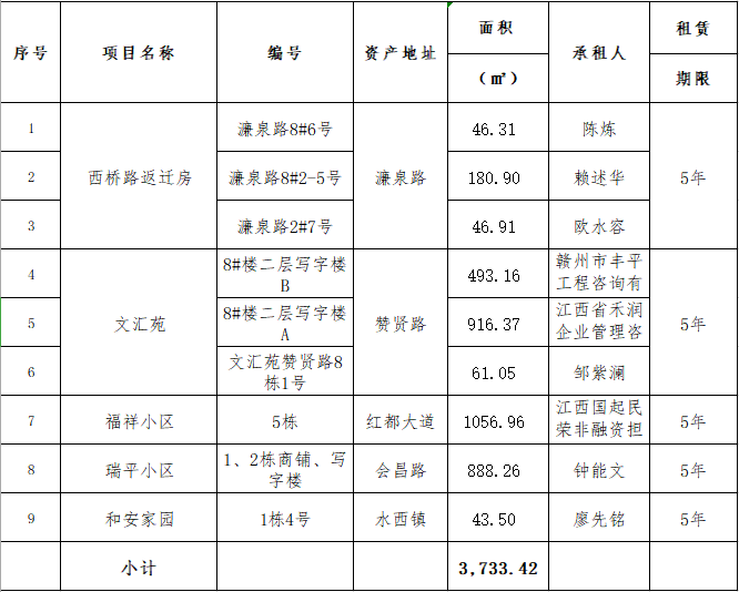 2021年5月28日上午10時(shí),在贛州市公共資源交易中心舉行的贛州振興實(shí)業(yè)有限責(zé)任公司贊賢路等二十七宗資產(chǎn)公開(kāi)招租(項(xiàng)目編號(hào)GZCQ2021072),現(xiàn)將公開(kāi)招租成交情況公示如下: